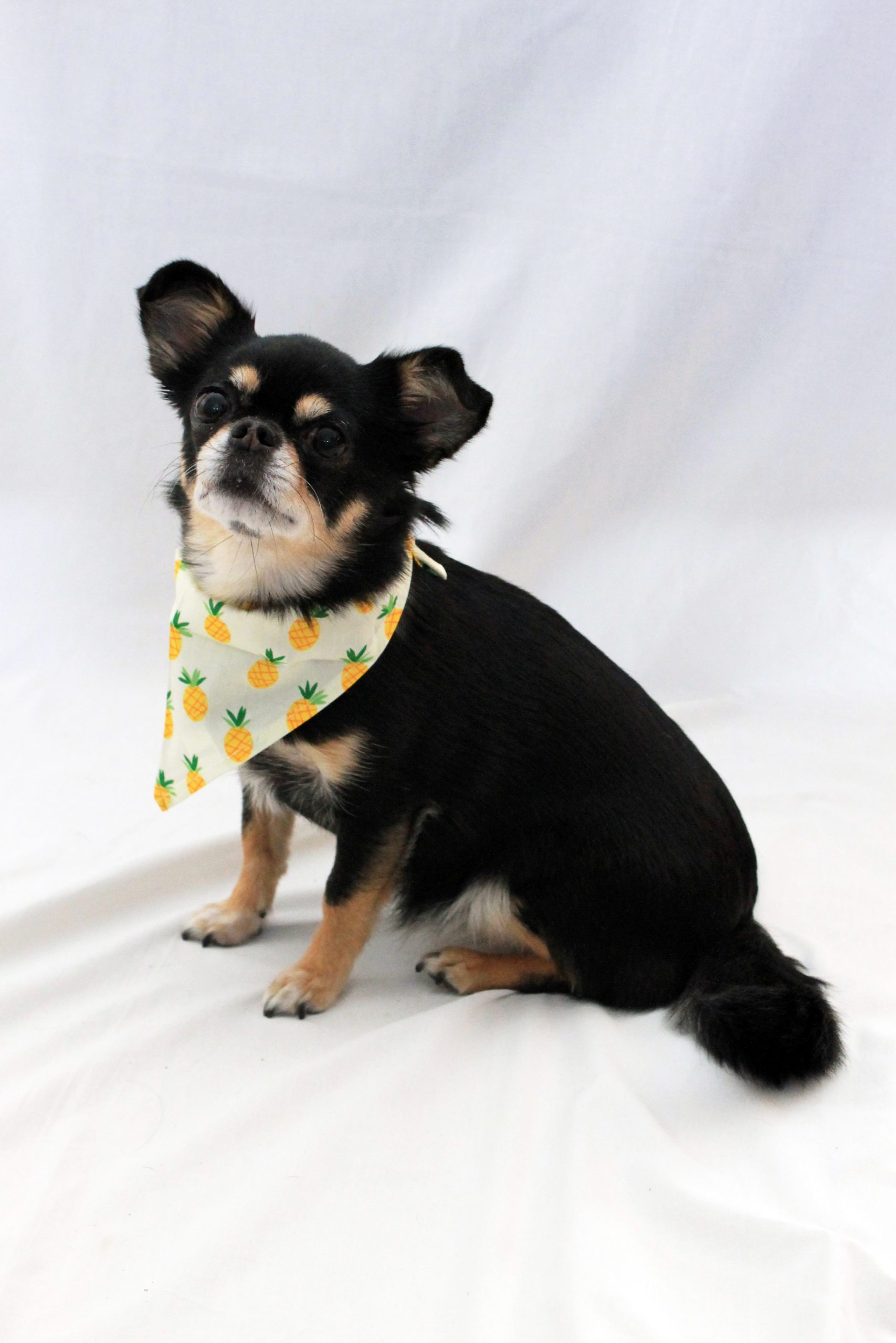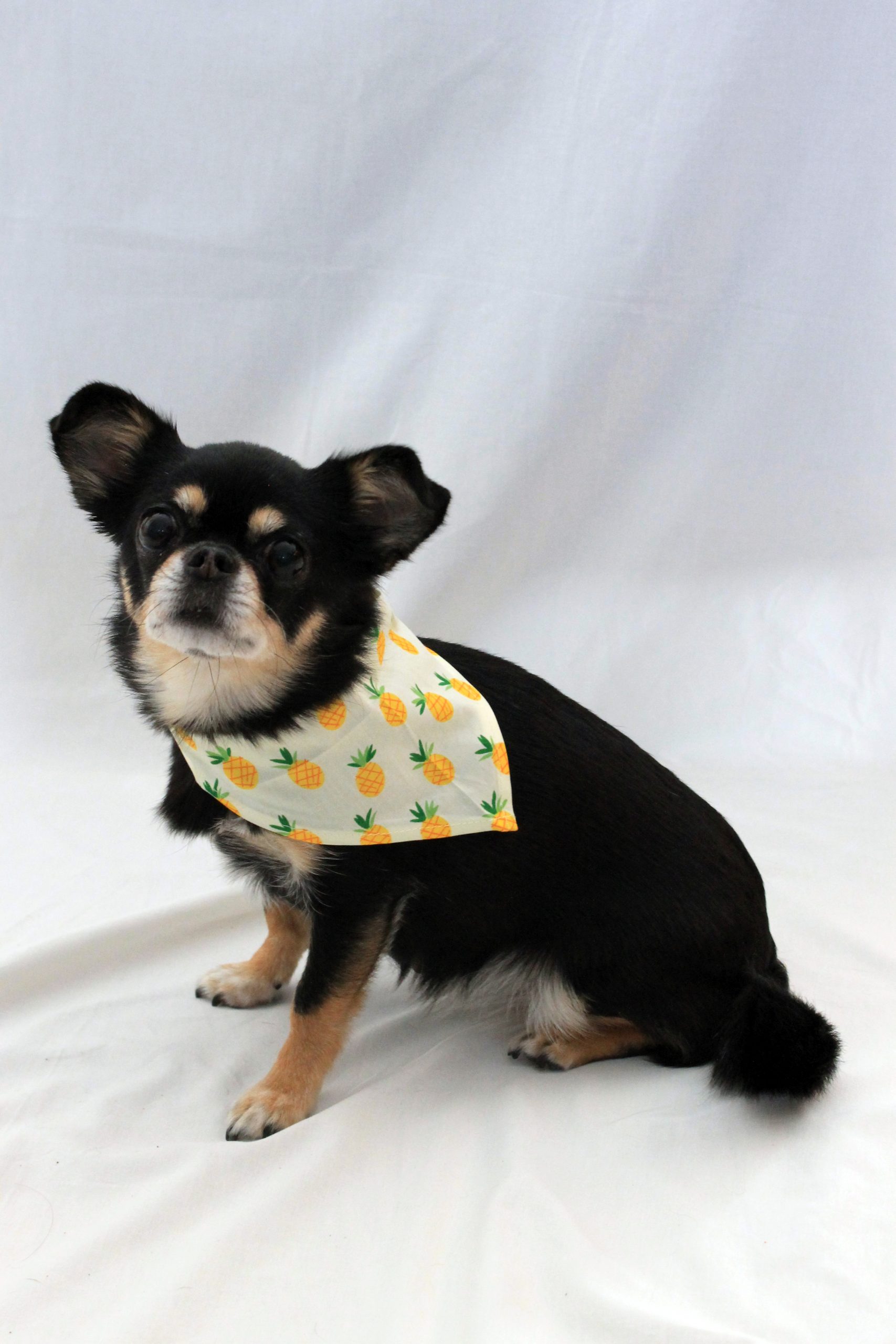 Ananas sjaaltje is een super leuk sjaaltje, beschikbaar in 2 maten! Zo kan het sjaaltje gedragen worden door kleine en grote honden en katten. Dit sjaaltje heeft een opdruk met ananassen, lekker zomers. Het sjaaltje is gemaakt van 100% katoen en heeft daardoor een hoog draag comfort. Het sjaaltje knoop je om, bij het bestellen is het dan ook handig om wat centimeters over te laten als je de nek van je hond of kat opmeet. Lana draagt maat Small, zij weegt 4,3 kilo en haar nek is 26 centimeter. Twijfel je welke maat je nodig hebt? Neem dan een maat groter.