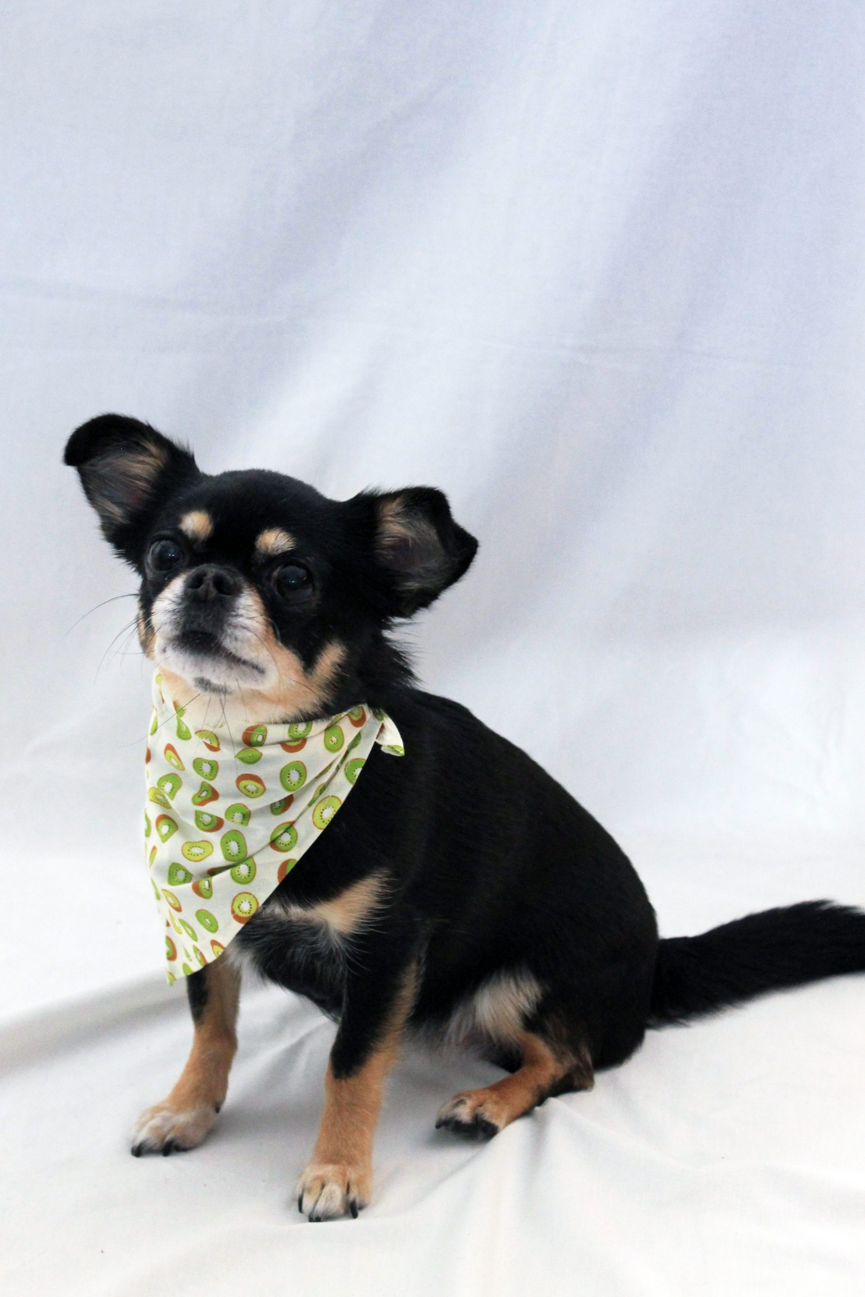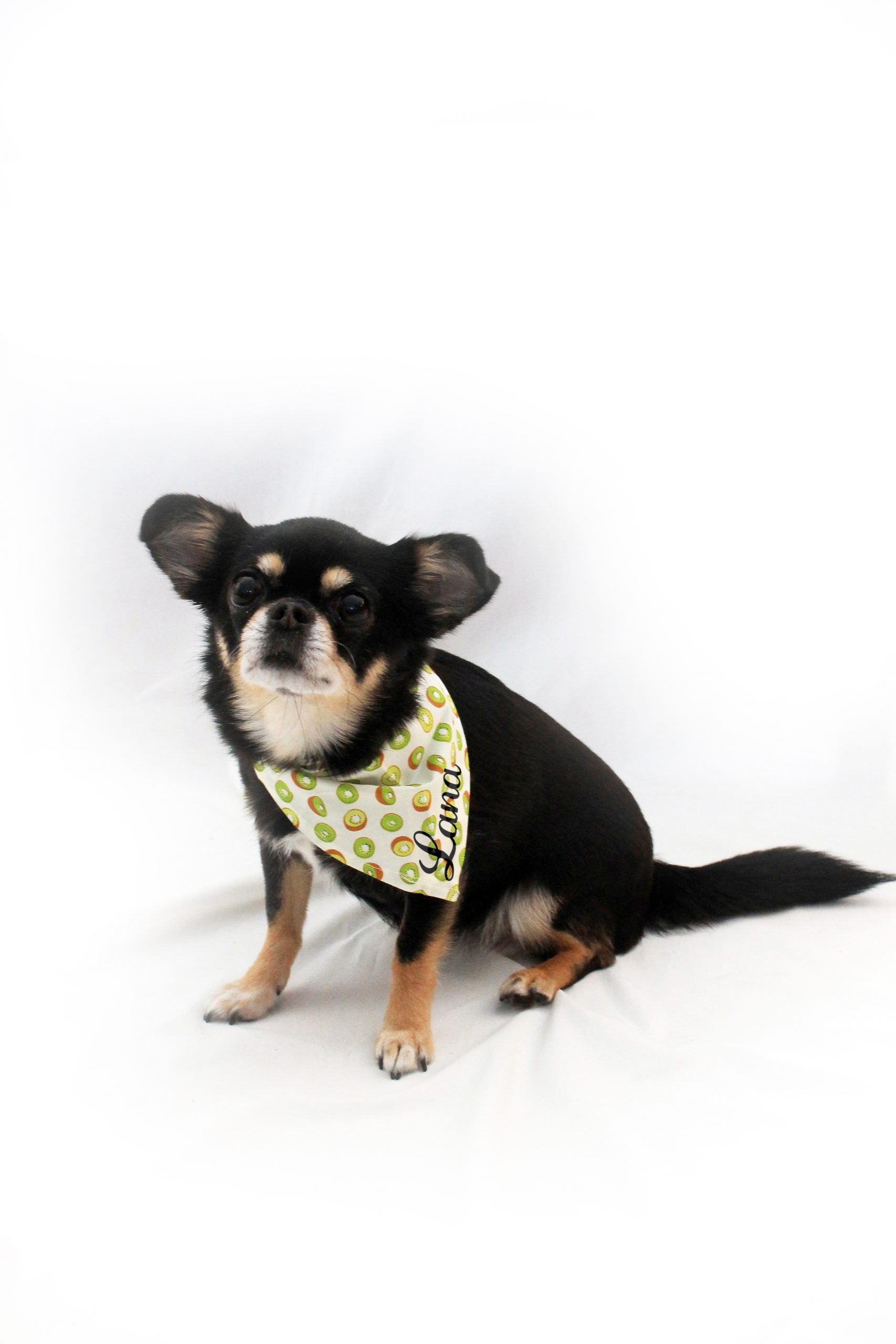 Kiwi sjaaltje is een super leuk sjaaltje, beschikbaar in 2 maten! Zo kan het sjaaltje gedragen worden door kleine en grote honden en katten. Dit sjaaltje heeft een opdruk met kiwi’s, kleurrijk en gezond! Het sjaaltje is gemaakt van 100% katoen en heeft daardoor een hoog draag comfort. Het sjaaltje knoop je om, bij het bestellen is het dan ook handig om wat centimeters over te laten als je de nek van je hond of kat opmeet. Lana draagt maat Small, zij weegt 4,3 kilo en haar nek is 26 centimeter. Twijfel je welke maat je nodig hebt? Neem dan een maat groter.