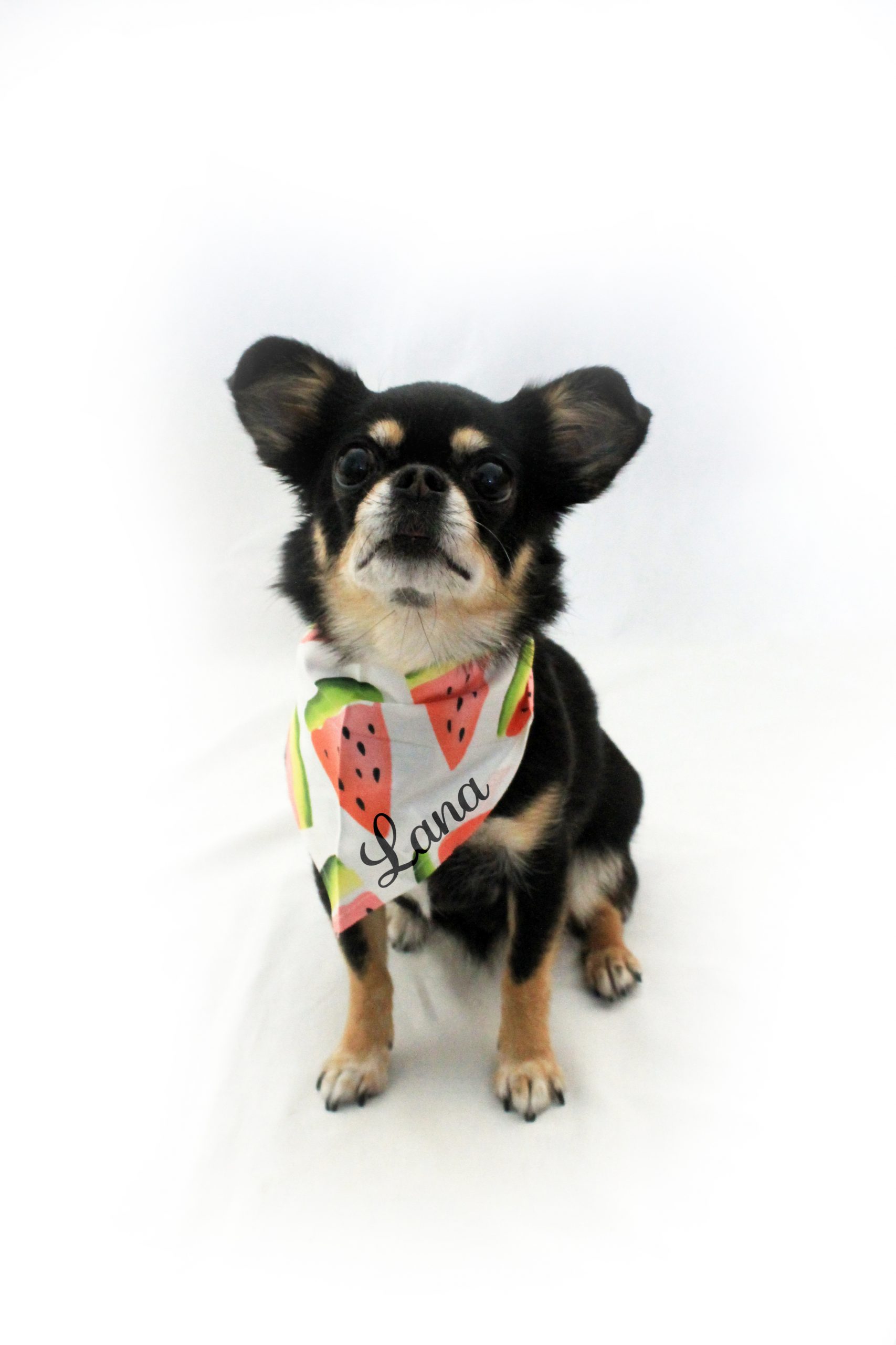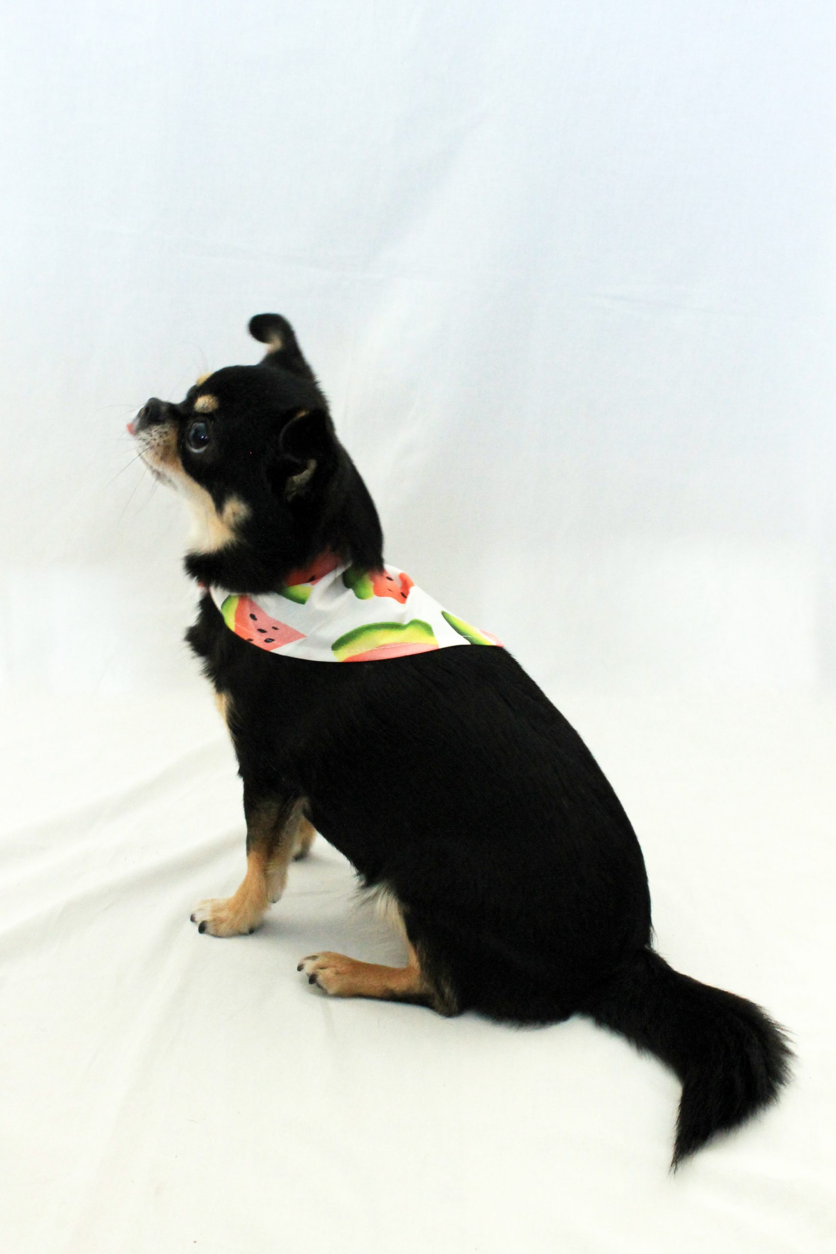 Watermeloen sjaaltje is een super leuk sjaaltje, beschikbaar in 2 maten! Zo kan het sjaaltje gedragen worden door kleine en grote honden en katten. Dit sjaaltje heeft een opdruk met watermeloenen, lekker zomers. Het sjaaltje is gemaakt van 100% katoen en heeft daardoor een hoog draag comfort. Het sjaaltje knoop je om, bij het bestellen is het dan ook handig om wat centimeters over te laten als je de nek van je hond of kat opmeet. Lana draagt maat Small, zij weegt 4,3 kilo en haar nek is 26 centimeter. Twijfel je welke maat je nodig hebt? Neem dan een maat groter.